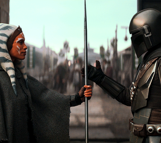 Nonetheless, Ahsoka does not deny being a Jedi. Even after being called a Jedi she doesn’t retort with her famous, “I am no Jedi.” line. This is not to say that she has fully accepted the Jedi identity once again, rather to show that she understands her place in the spectrum. She is living like a Jedi, just without the Order. This makes it ironic that she assists The Mandalorian, as, “The Jedi are the ancient enemy of Mandalore.” But, of course, “A Mandalorian and a Jedi. They’ll never see it coming.” When the wounds of the past are healed, new paths can be forged.