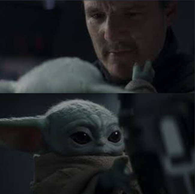 “Help me take off this mask,” is the first request Anakin Skywalker ever makes of his son. “Let me look on you with my own eyes.” Standing there, looking at Din and Grogu, Luke has to hear the echo. This time, however, it’s different. This time it is the son who requests the father remove his helmet so the son can see his father with his own eyes. Grogu, consciously or instinctively, knows that this might be the last time he sees Din, and he doesn’t want to remember him as a mask but as a man. His right hand reaches up, as Shmi’s did to Anakin, to touch his face. Anakin’s path gets darker after that touch, whereas Ben Solo’s life moves toward the light after his father Han Solo touches his face. The difference is that Han touches Ben’s face with his left hand. Knowing that Din is going to face huge challenges now that he wields the darksaber and is thus the defacto ruler of Mandalore, could this difference between the association of the right hand with dark and the left with light foreshadow trouble for Djarin?