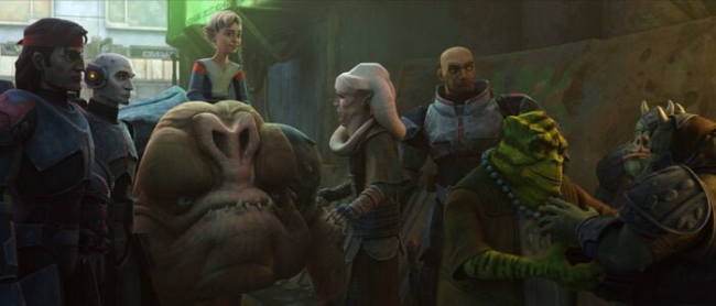 Symbolically this episode is encouraging audiences to consider the mystery of her identity through the visage of the rancor. As it is with Omega, this is a layered approach to storytelling. For one, Moochi is first called a child, later to be revealed as an adolescent rancor. This makes the team’s job harder than expected, as has held true with protecting Omega. Moochi’s reveal most likely foreshadows some major reveal about Omega’s true purpose, although arguments could be made that it foreshadows a shift in Wrecker, the “beast” of the team, that has been promised by the repeated focus on his head injury. Considering that the rancor was first presented as a monster trying to kill hero of the saga Luke Skywalker, it is also noteworthy that the monster is now the hero. Omega’s unexpected identity will reveal itself in a similar way, first as something traditionally considered negative and then shifting to something positive and heroic.