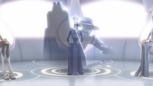 If Omega is that monster, she is Frankenstein’s. Dr. Frankenstein created the monster out of a need for control, and the monster was judged by others before being given the chance to live. The same holds true as it regards the Kaminoans and Omega. While the mystery remains, Cad Bane’s hologram conversation with the panel of cloners makes it clear that they are the Dr. Frankenstein, and they see Omega as their greatest monst— creation. As it was for Dr. Frankenstein, though, things have not been going as planned.