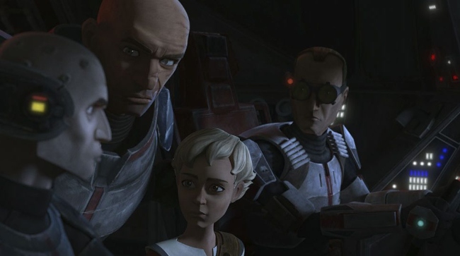 True trust is seen amongst the remaining members of the team. Hunter clearly trusted his team to save him, thus his sacrifice. But when looking at the arc of the season, the growing ability to trust Omega is the greatest aspect of growth for the team. The series premiere makes it very clear that they have no need nor reason to trust Omega, but over the season she earns that trust. She shows this not so much through deed, although her deeds are certainly blocks that build the trust, but through her loyalty to her moral compass. She sees the good in people and always wants to help, thus when she knows how to get into Kamino via a secret entrance they have no reason to doubt her.
