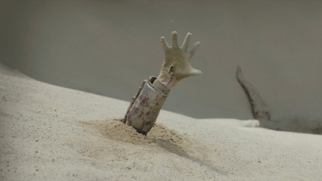 The Boba Fett that fell into the Sarlacc pit is not the same one who emerges from it. His old self has been burned away in the same way that he burned his way through the Sarlacc. The wounds to his flesh protest this fact. (Star Wars also has a strong connection between death and fire across its narrative, from Qui-Gon Jinn all the way to Anakin Skywalker.) As he emerges, covered in the fluid from the Sarlacc’s innards, it is as if he is coming out of the womb and is covered in embryonic fluid. But this birth, like his original birth, is unnatural. His hand comes out first as if we are watching a zombie Star Wars movie. Fett claws his way out of his tomb and, right as it seems the legendary figure will rise into a hero pose, he collapses and says, “I can’t.”